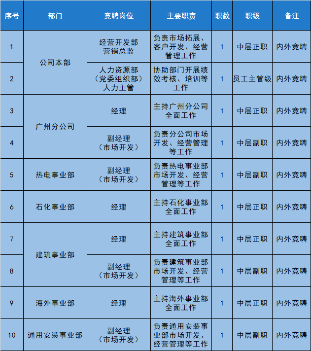 安裝公司管理崗位公開競聘公告